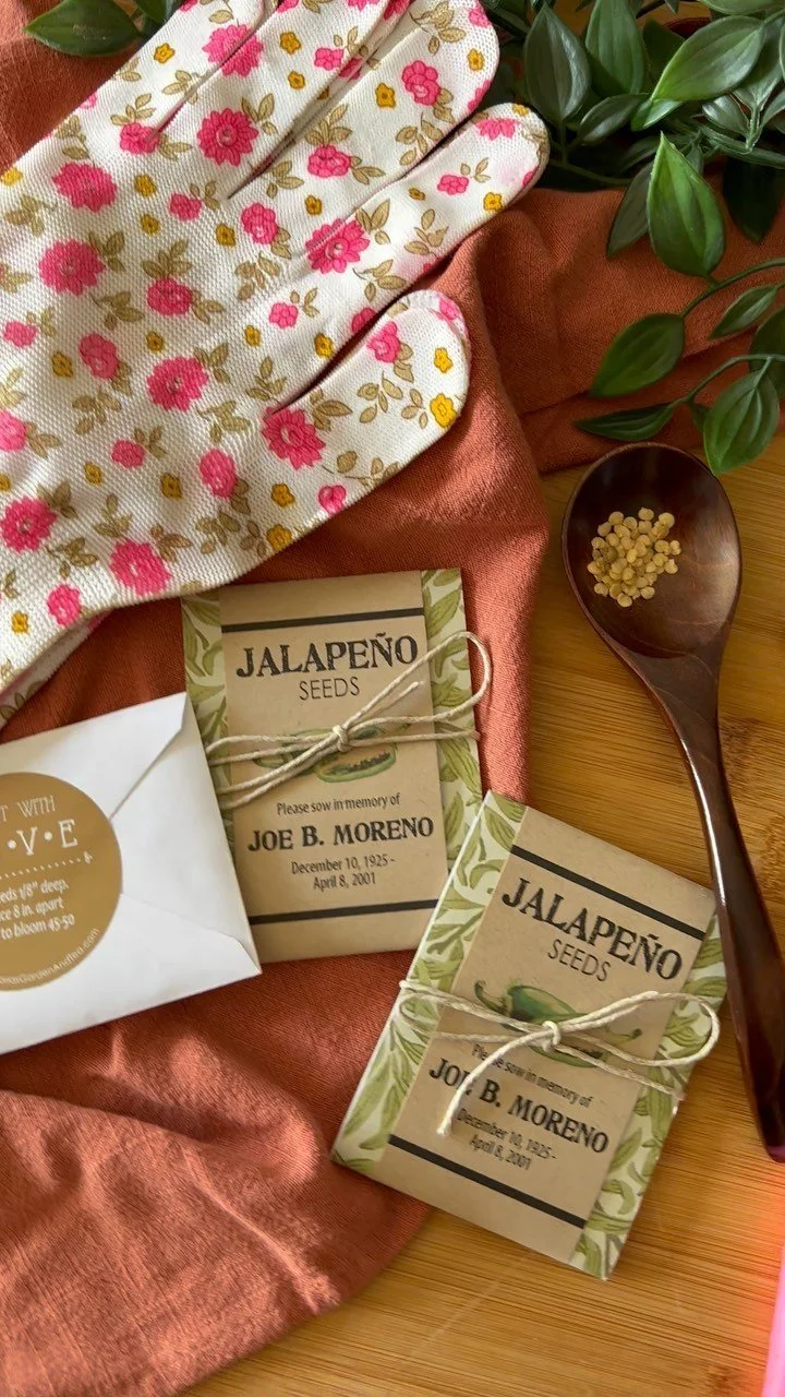 Gloria’s Garden started back in 2015 when our Grandma Gloria passed away. Wanting something more than a simple prayer card to hand out to our family and friends at her funeral, we set out to create something extra special and unique… a personalized seed packet that represented her love for gardening. Today our shop has grown leaps and bounds, thanks to all of our amazing customers! You can read all about it below!