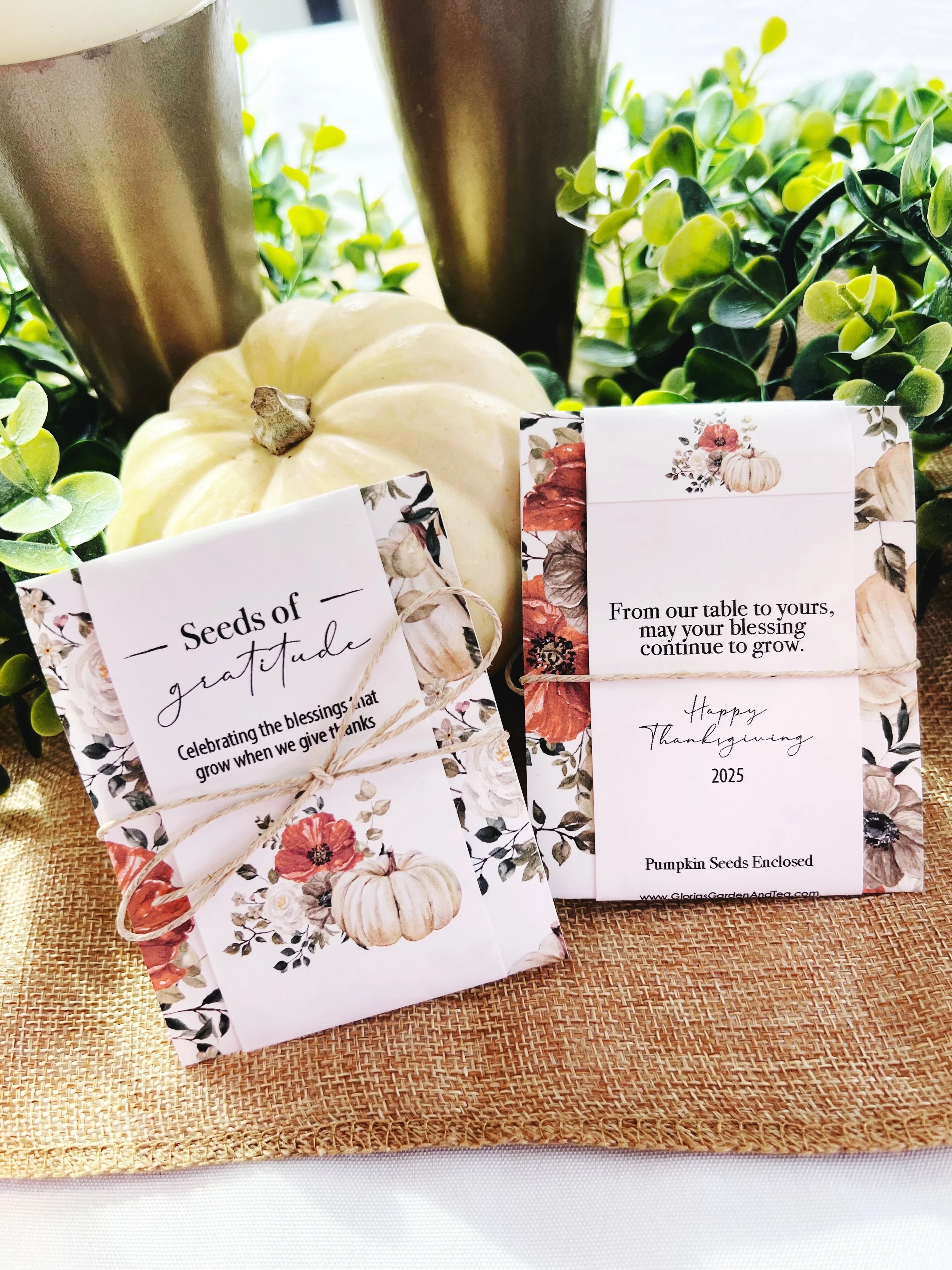 Celebrate Thanksgiving and every special fall celebration with our Personalized “Seeds of Gratitude” Place Setting Favors. Thoughtful and heartfelt, these charming seed packets are a sweet way to show thanks, honor loved ones, and add a touch of lasting beauty to your table.