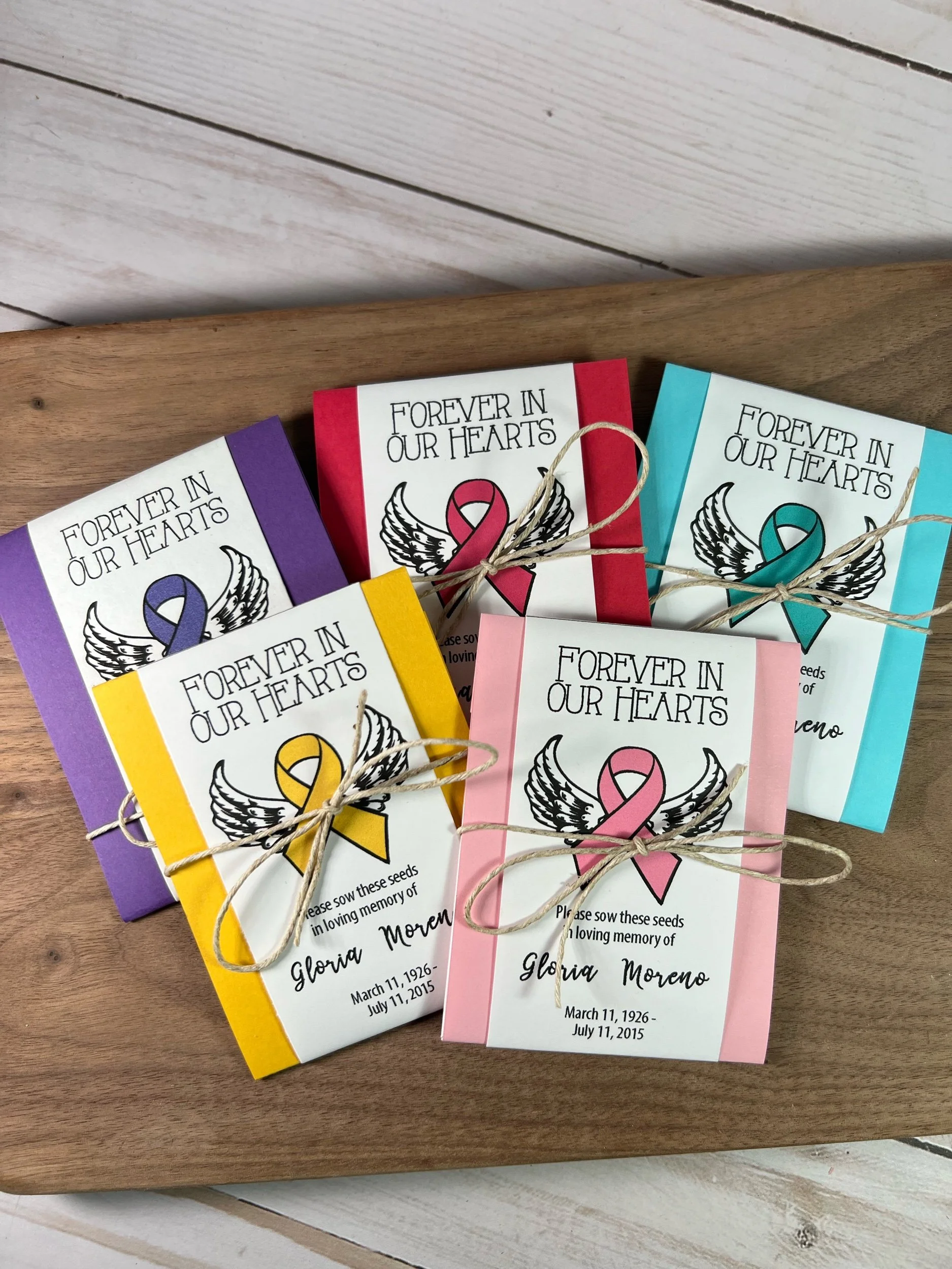 Awareness Ribbon Seed Packets | Personalized Remembrance Favors | Funeral, Memorial, Celebration of Life & Event Keepsakes
